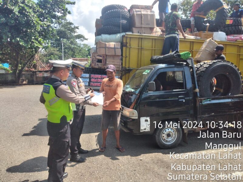 Lahat, detikserelo.com – Guna memberikan efek jera bagi kendaraan yang Over Dimensi Over Louding (ODOL) Polres Lahat melalui Satlantas memberikan tindakan tegas dengan menilang kendaraan unit dump truck yang berjalan di jalan Lintas Sumatera dengan kondisi Over Louding.